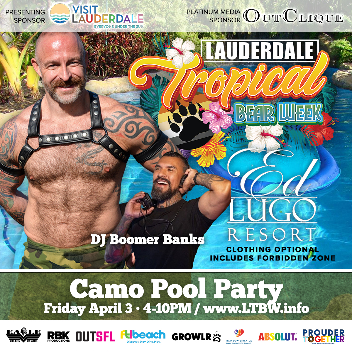 LTBW – CAMO POOL PARTYLTBW 2026 Sunset | Warm Water | Cocktails | Music CAMO POOL PARTY ED LUGO RESORT | 4 PM -10 PM Music By: BOOMER BANKS GET TICKETS Presale starts at $35 | $45 at the Door